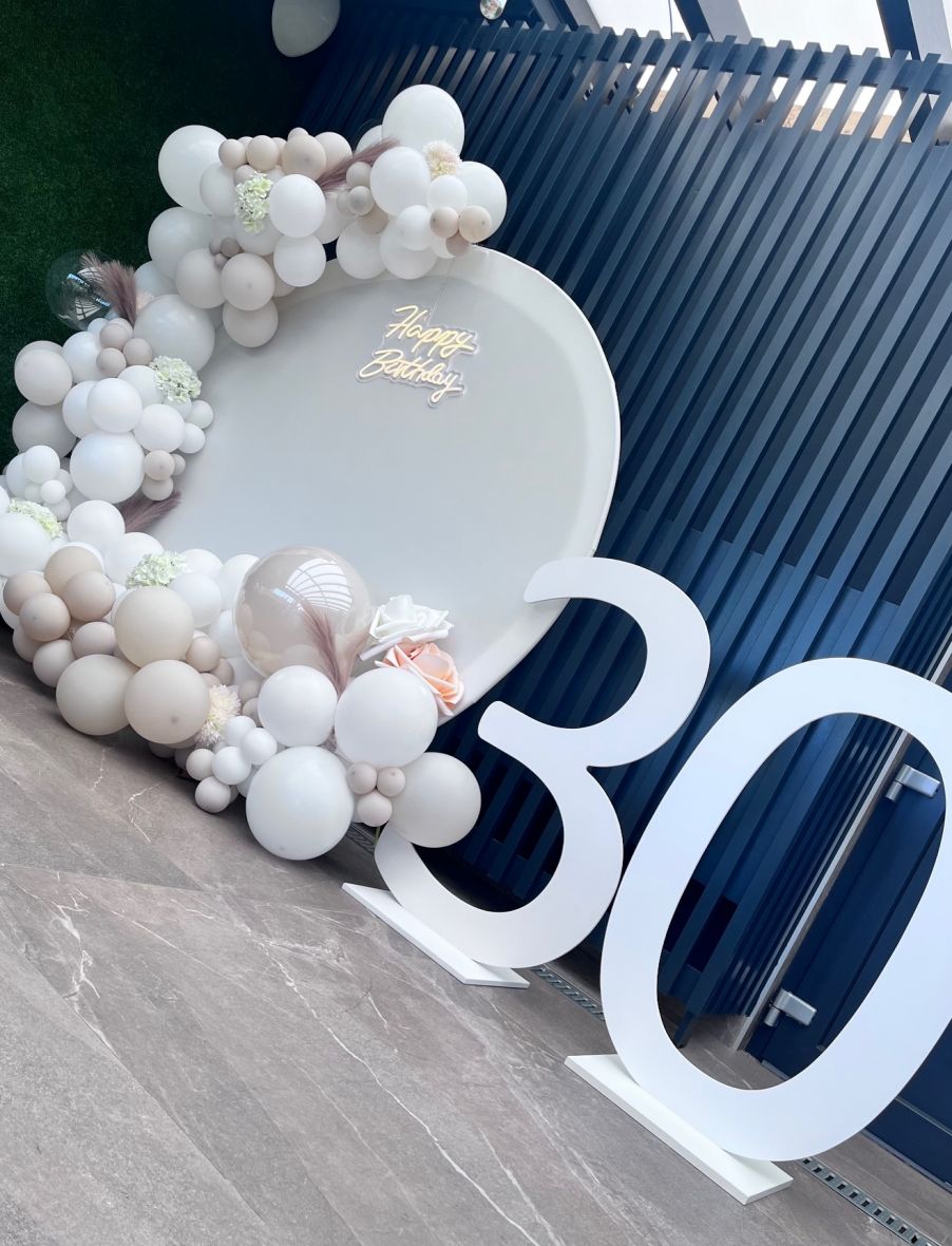 A kisebb méretű lufi dekoráció tartalmaz egy fotó falat, egyéni feliratot és egy általad választott színű lufi dekorációt, illetve igény szerinti dekorációs díszítést. (Pl. szárított virágok, tollak...)